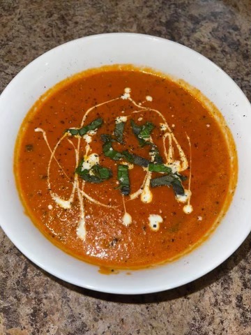 Homemade creamy tomato soup and grilled cheese sandwiches